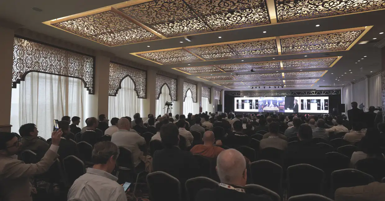 The Casino Lounge offers a spacious and adaptable hall for conferences and social events, accommodating up to 1,150 people in auditorium capacity. Located on the mezzanine floor of the Hotel, the Casino Lounge boasts a fully carpeted interior, large windows offering stunning views of the city or the sea, and elegant curtains that can be closed to create a completely dark environment, ideal for any type of projection.